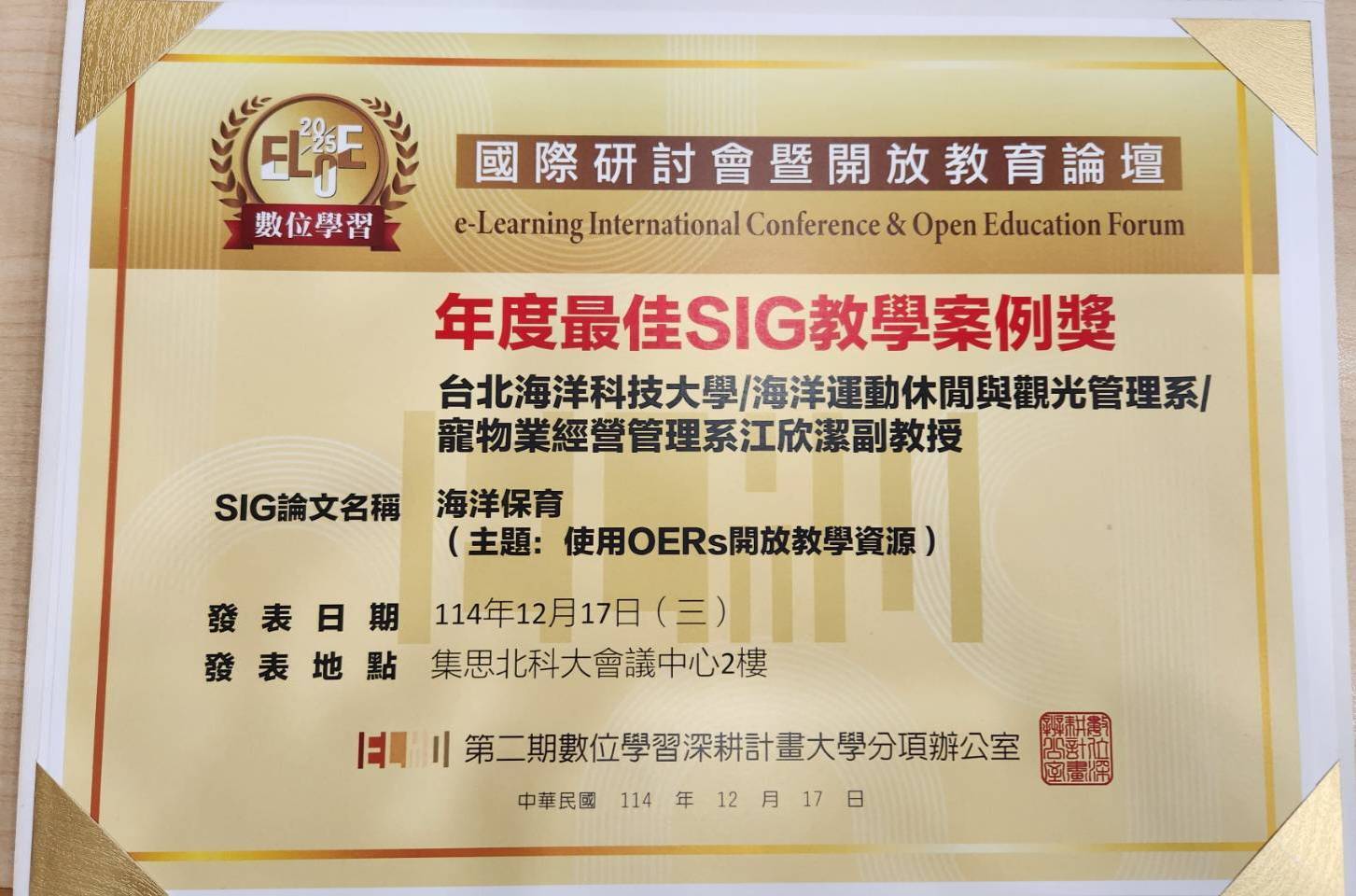 2025ELOE數位學習國際研討會暨開放教育論壇,江欣潔老師以<海洋保育>磨課師課程榮獲年度最佳教學案例獎